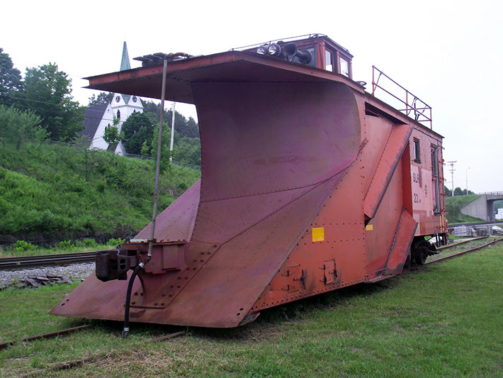 The photo to the right is of a train car, currently in use, designed to plow the snow that accumulates along the tracks in the winter months during heavy storms.