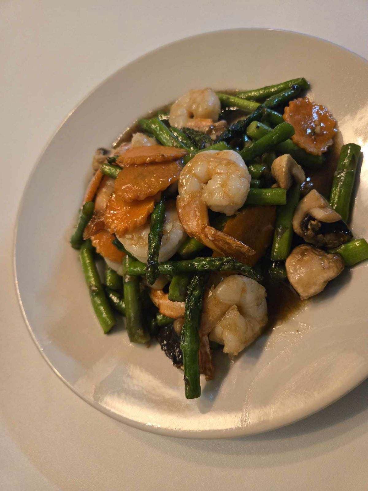 Cripsy half duck topped with mushrooms, onions, pinapples, and scallions, in sweet & sour tamarind sauce.